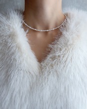 秋冬ならではのファーやニットに華奢なパールを合わせることで、主張しすぎない気品のあるコーディネートをたのしめます◎