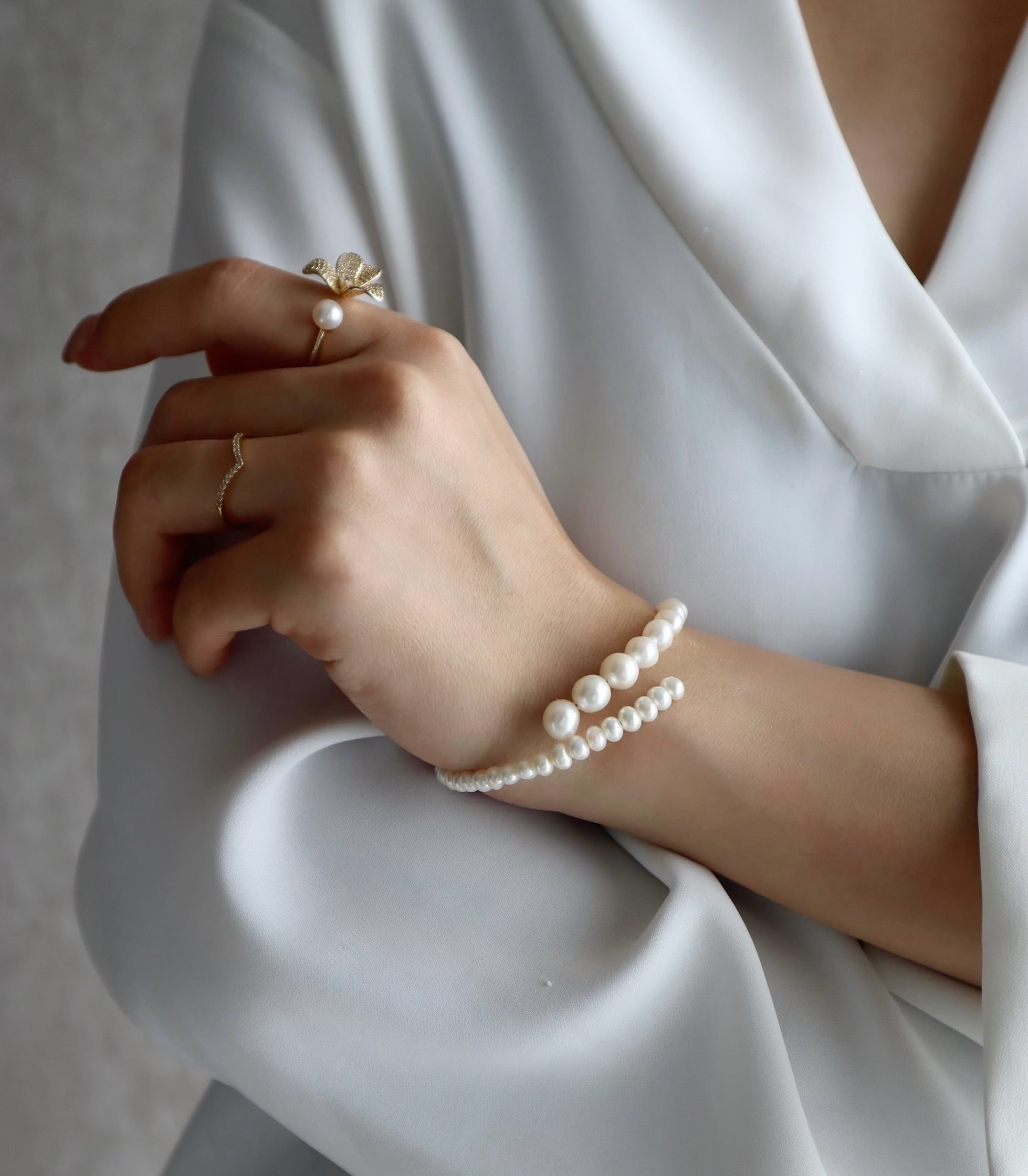 3.5㍉から6.0-6.5㍉のパールをグラデーションにしております。