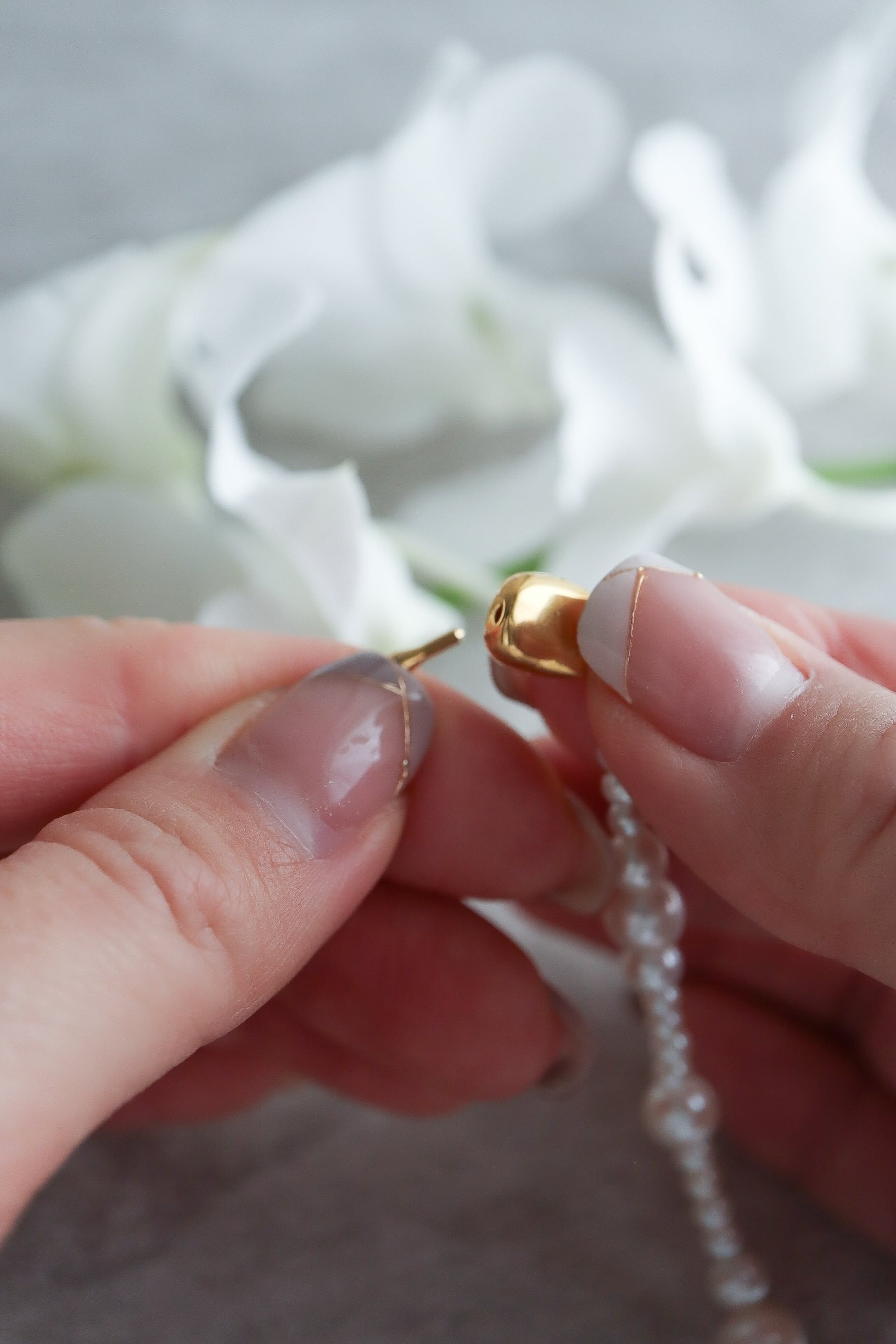 ネックレス全体に洗練された印象と上質な余韻を添えます。
