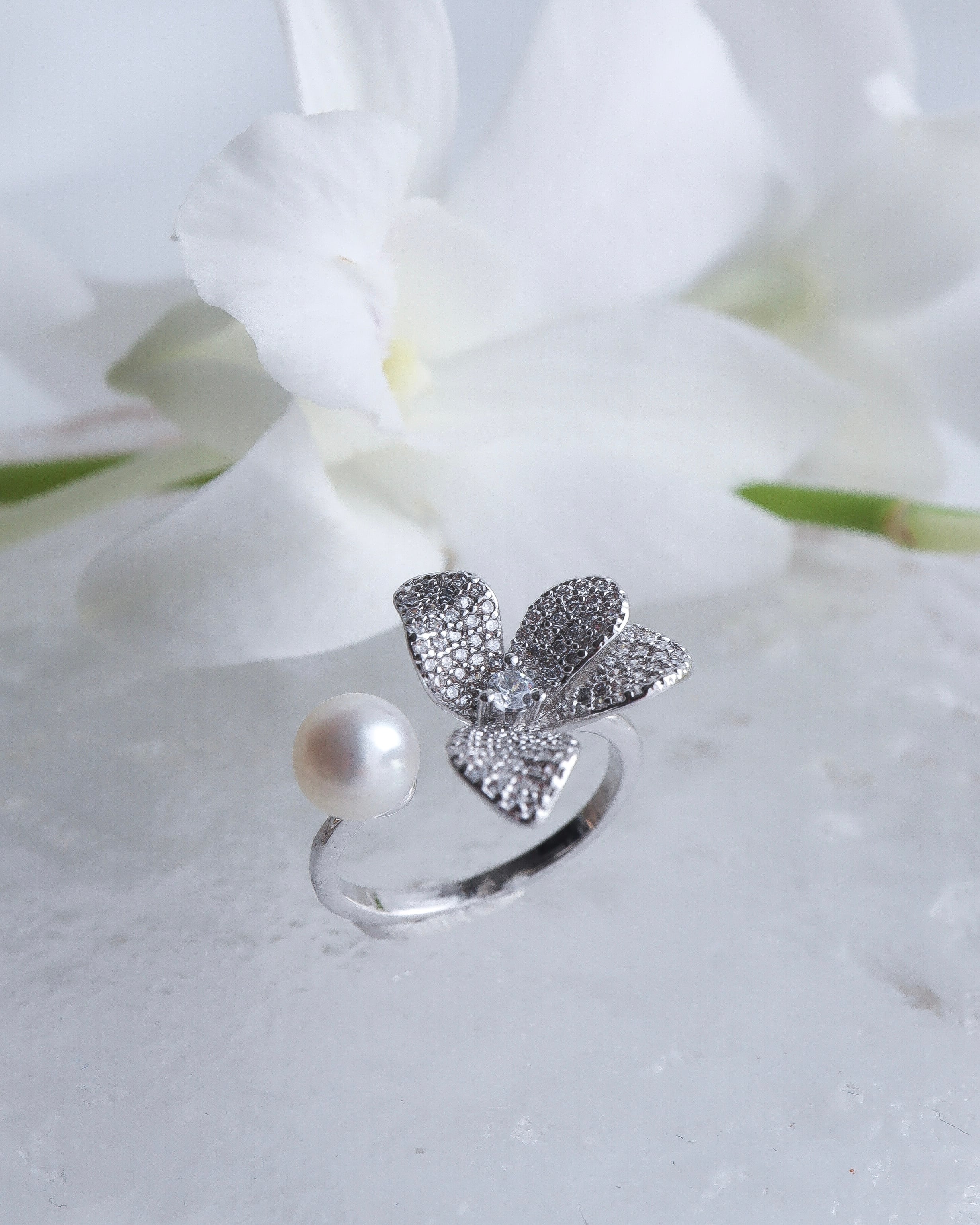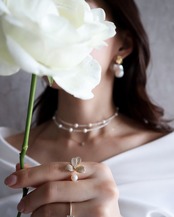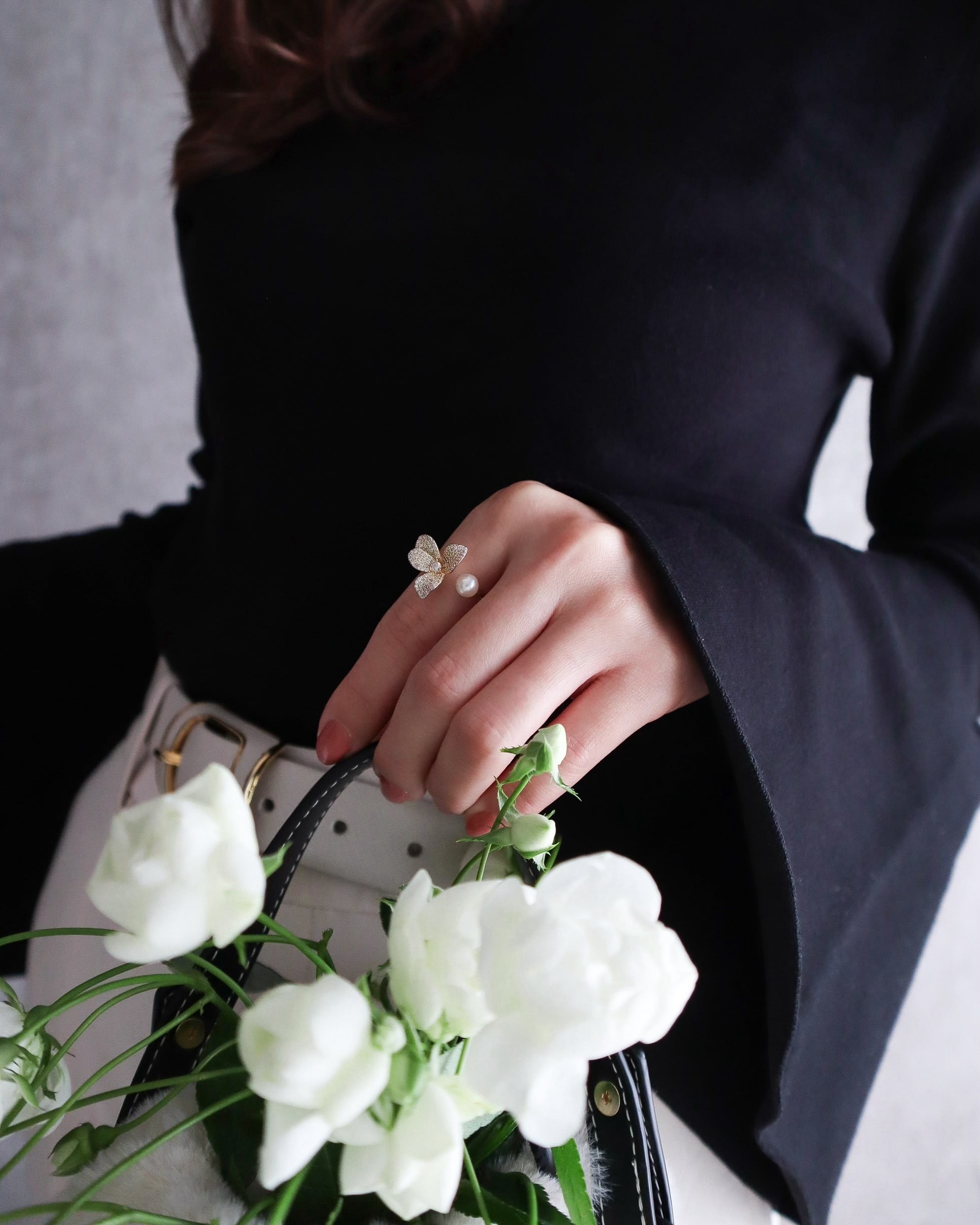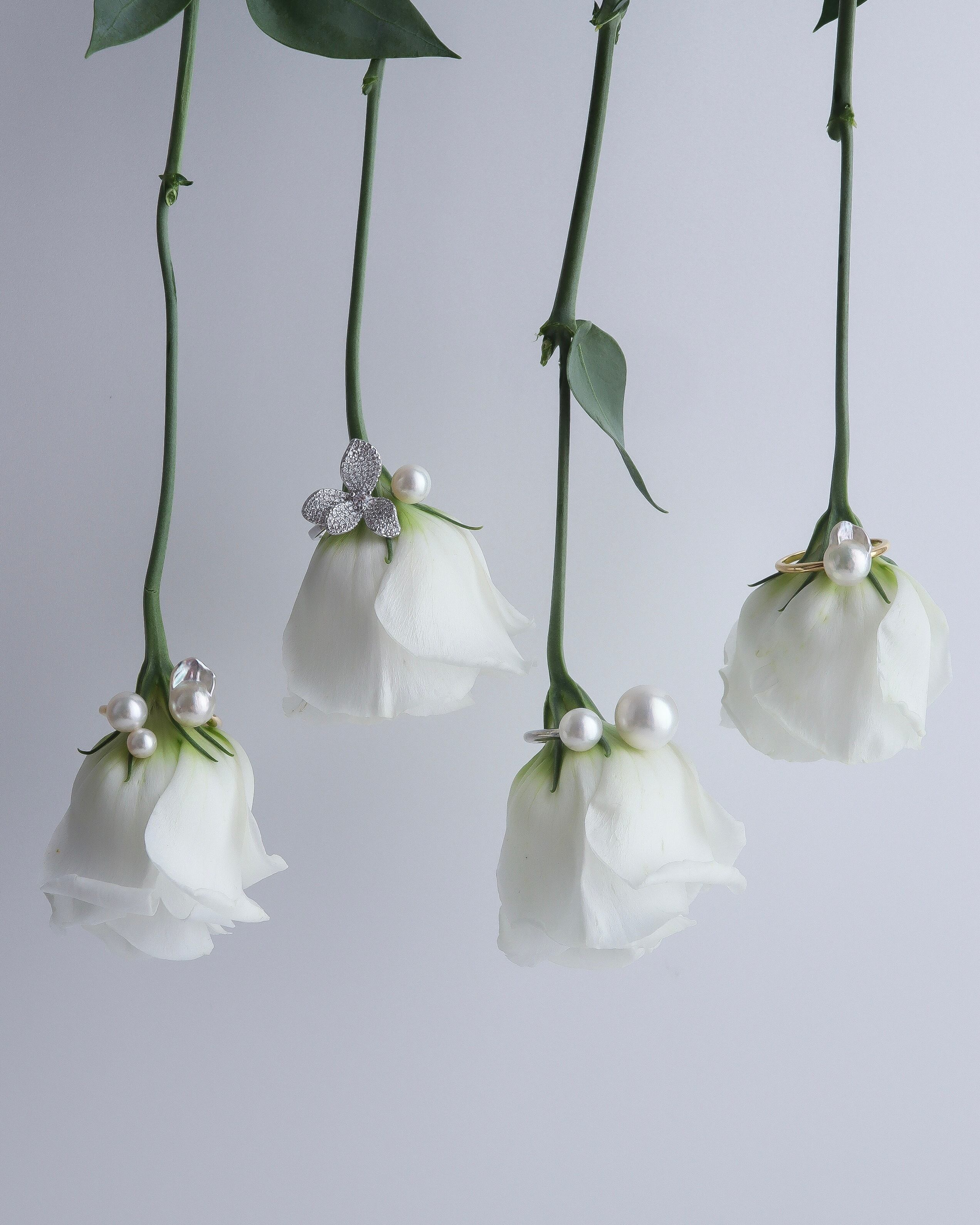 パールはお手元をより美しく魅せるSランクのホワイト淡水パールを選定。
